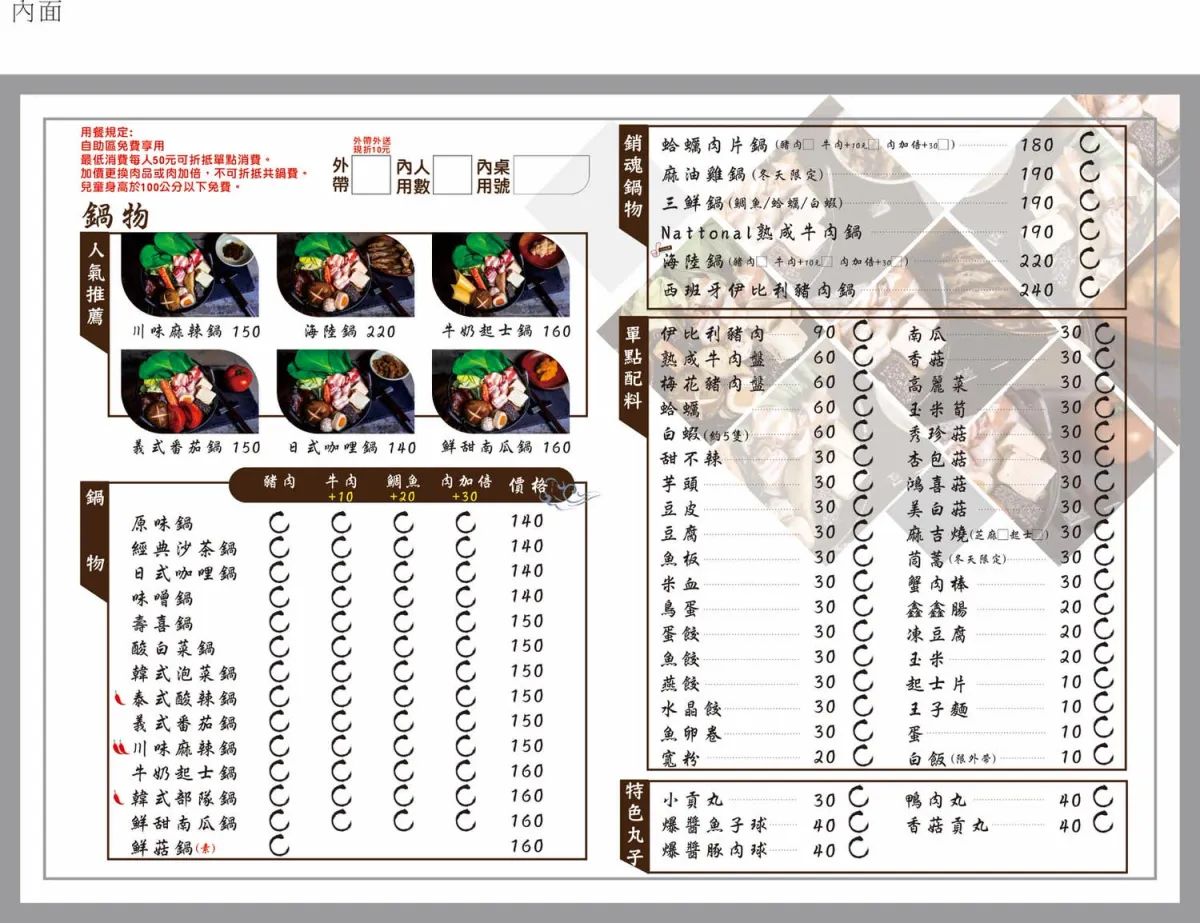 圖|簡單又清楚的菜單設計,依序選擇自己喜愛的湯頭與配料。