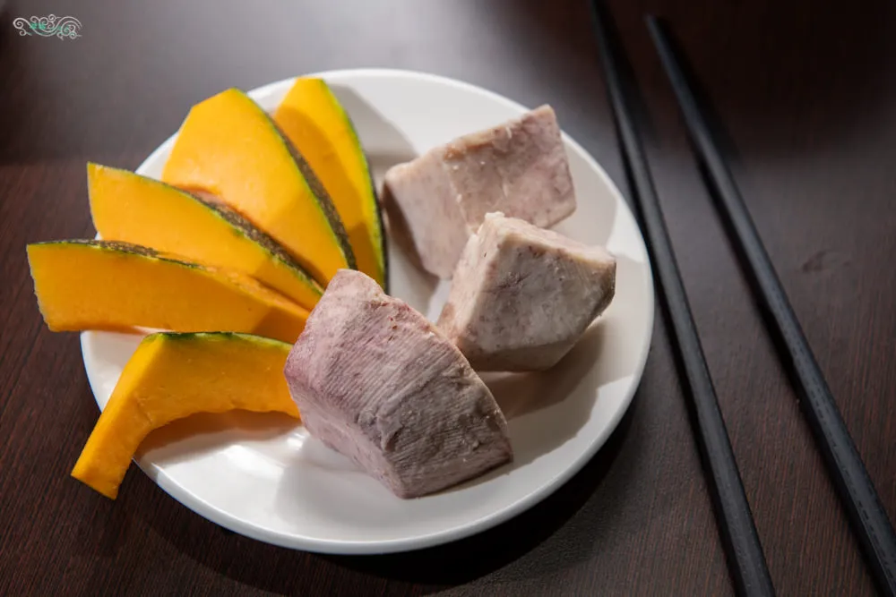 濃郁的南瓜香氣散發誘人的清甜味,喝起來偏清淡的南瓜湯頭,那清澈無華的鮮甜,讓鍋內的食材更加順口。