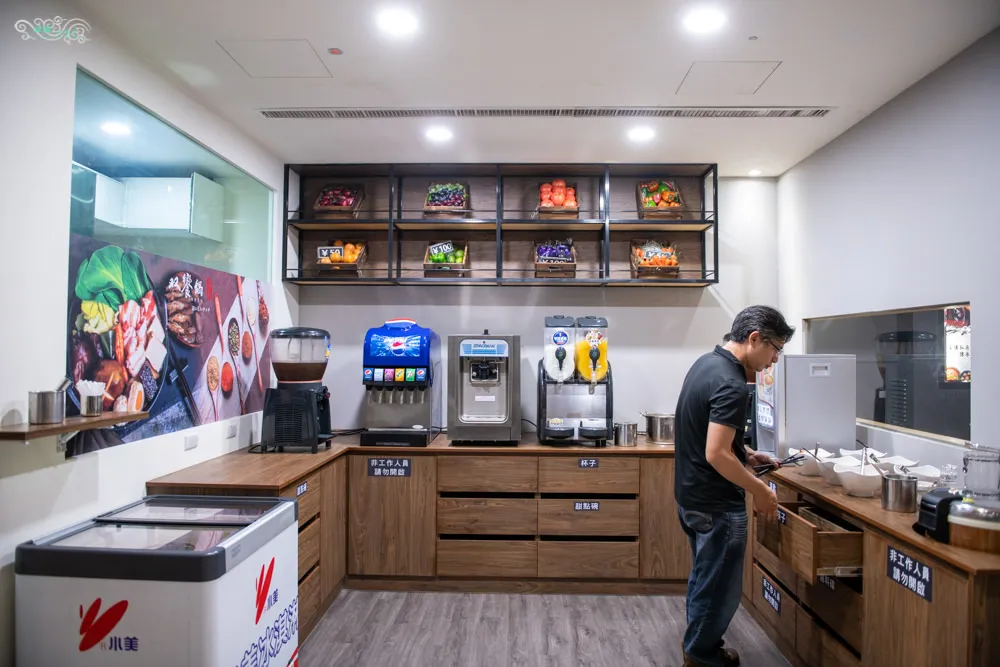 双饗鍋提供的冰品是高人氣品牌-小美冰淇淋,共有4種口味,口味不定期更換。飲料吧的選擇更是眾多,除了常見的芬達、雪碧與可樂等碳酸飲料之外,還有可爾必思、柳橙汁與日式煎茶,以及一台複合式的雀巢咖啡機,提供多品相又即時的咖啡與奶茶選擇。