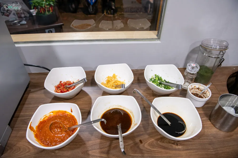 內用鍋物給你不受限的白飯,食量大的朋友一定很開心,還提供海苔粉加味喔。醬料區提供常見的火鍋基本醬料,如沙茶醬、醬油、白醋、辣椒、豆瓣醬、蔥等等,足以滿足一般需求。