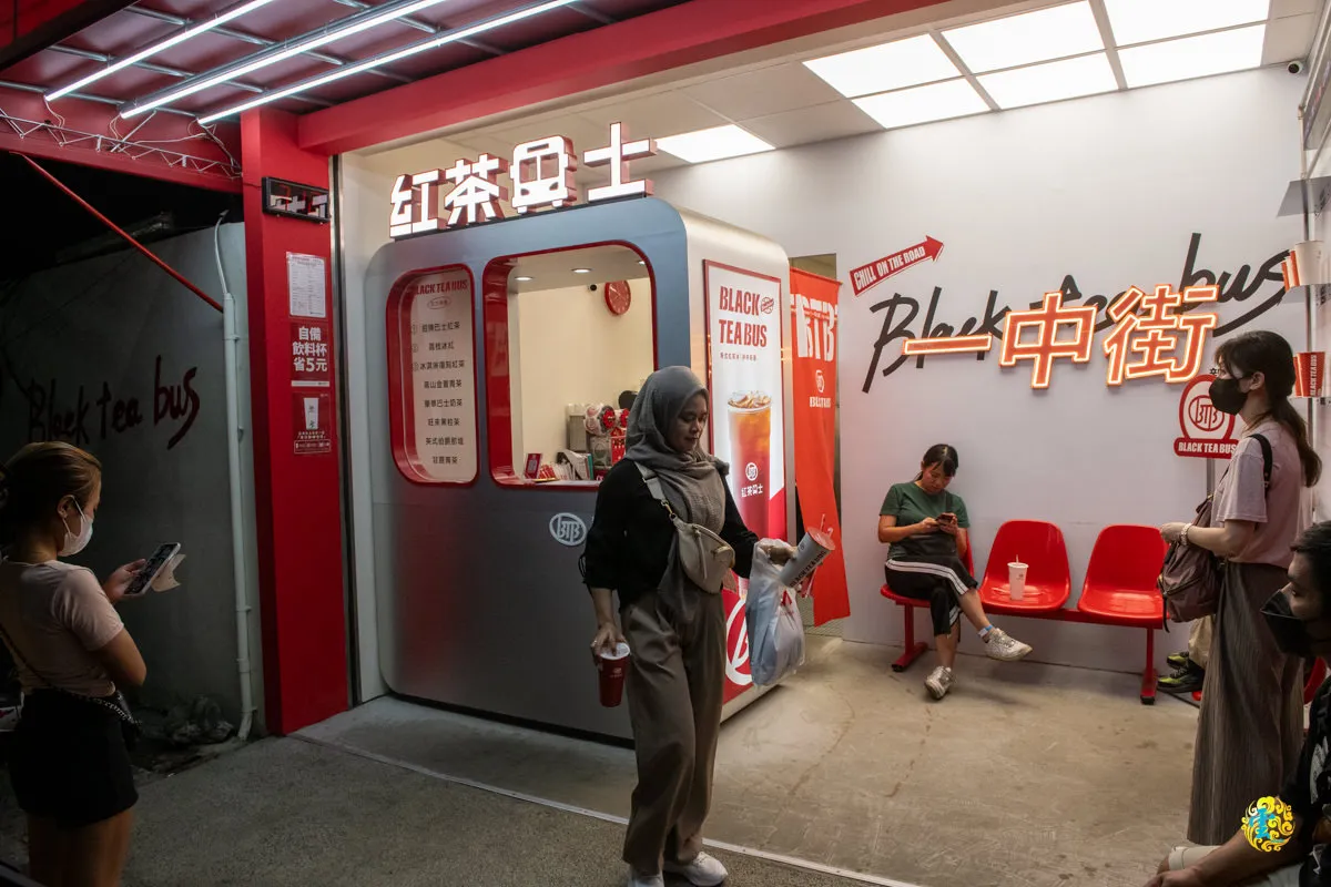 一中街的字樣在店面上顯得格外搶眼,仿佛在向遊客和顧客們宣告著它的存在。走進店內,瞬間被打造得如同巴士站的環境所包圍。從裝潢到座位的設計,每一個細節都讓人有種置身於巴士站的錯覺。這樣的營造,不僅讓人感受到紅茶巴士 BLACK TEA BUS對於紅茶的熱愛,也讓人感受到一種旅行的氛圍,仿佛即將踏上一場茶的冒險之旅。