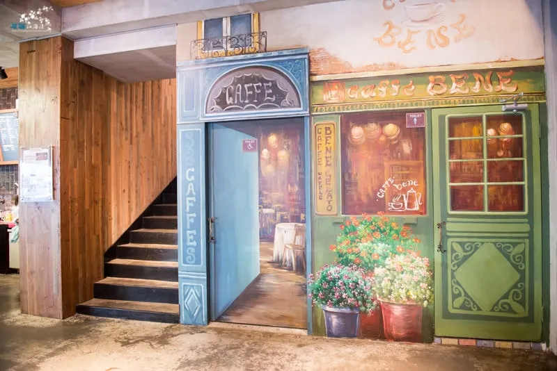 這面牆是廁所,牆上的塗鴉是韓國繪畫家的作品
