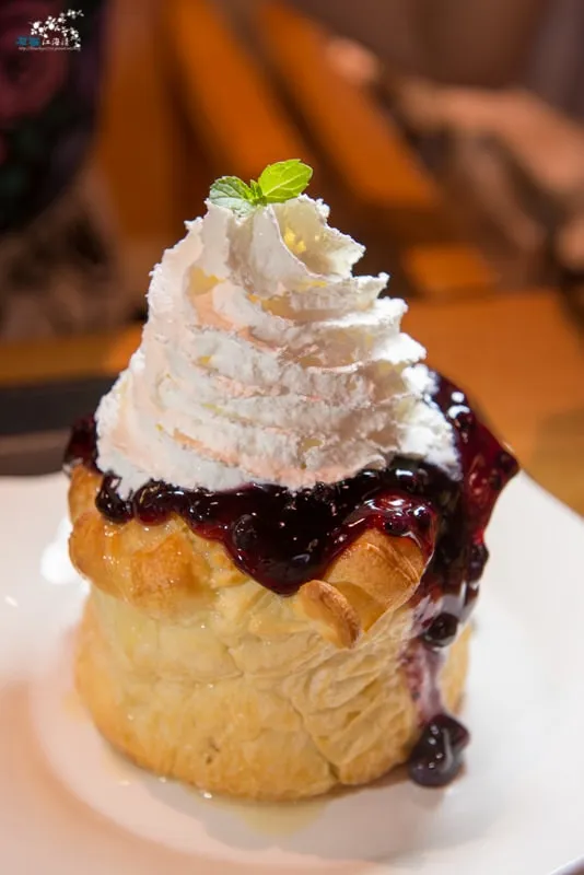 鬆脆的派司脆,上頭淋滿香甜的藍莓