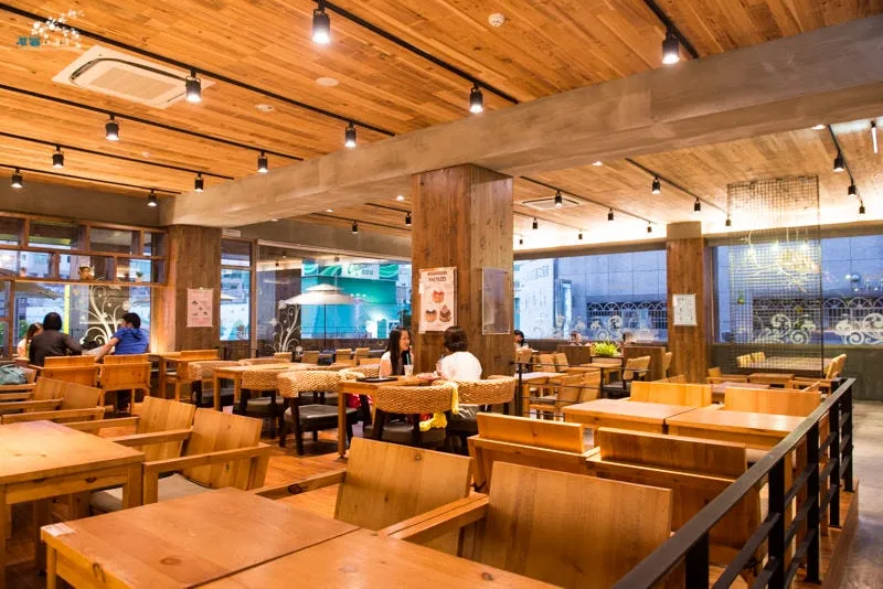 自然風木桌椅,帶來的休閒氣息,無所不在