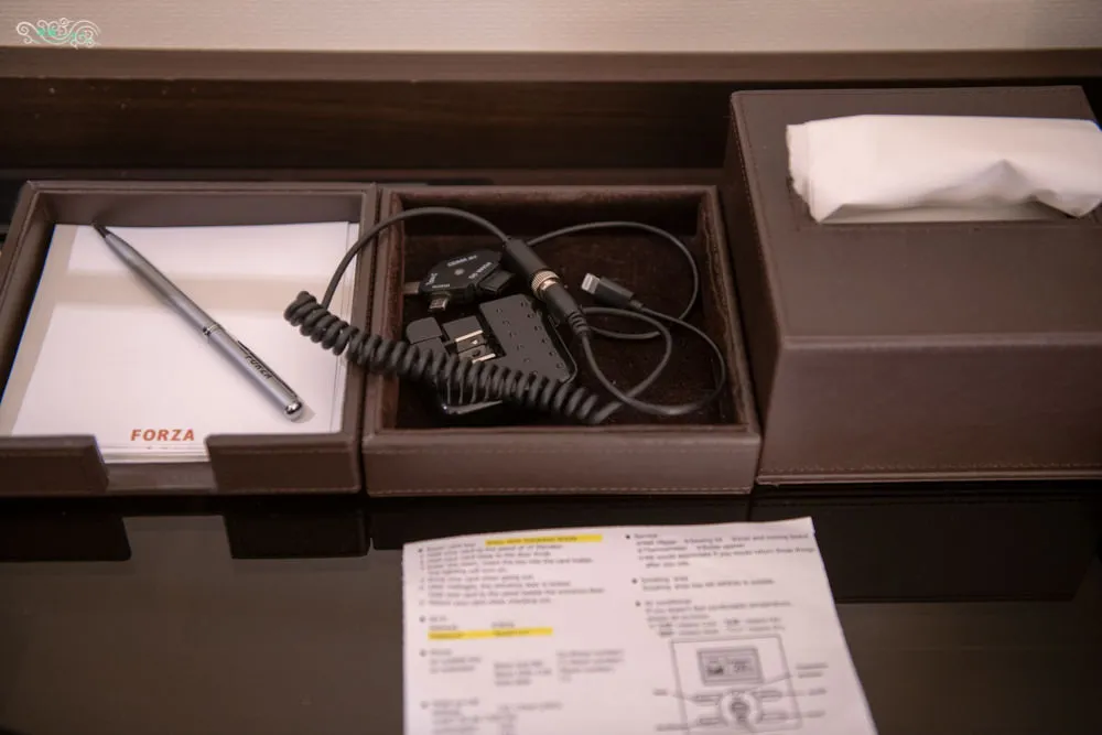 以雙人房來說,房間的大小約18平方公尺以這類商務旅館來說還算是標準尺寸,房間也算方正,只是女王一直覺得太小,Hotel Forza Hakata也有更大一點的房型,不過這次的行程安排,我們算是蠻晚才會抵達飯店,隔天一早有行程要走,所以標準房型已經足夠。房間內還附有電動按摩枕,可以為旅途中疲累的身體提供一些紓壓效果。商務旅館必備的電熨衫板、除濕機與行李架等等,也都有。Hotel Forza Hakata全館禁煙,所有的房間都是禁煙房,不喜歡煙味的人絕對可以住得安心。