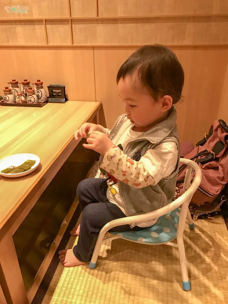 用餐空間有一塊四張長桌的和室區域,與雙人桌的公共空間。在和室區域有提供小小孩專屬的椅子,雙人桌的部分也有提供小孩專屬的兒童椅,Hotel Forza Hakata對於小孩這個部分,做的很貼心周到。