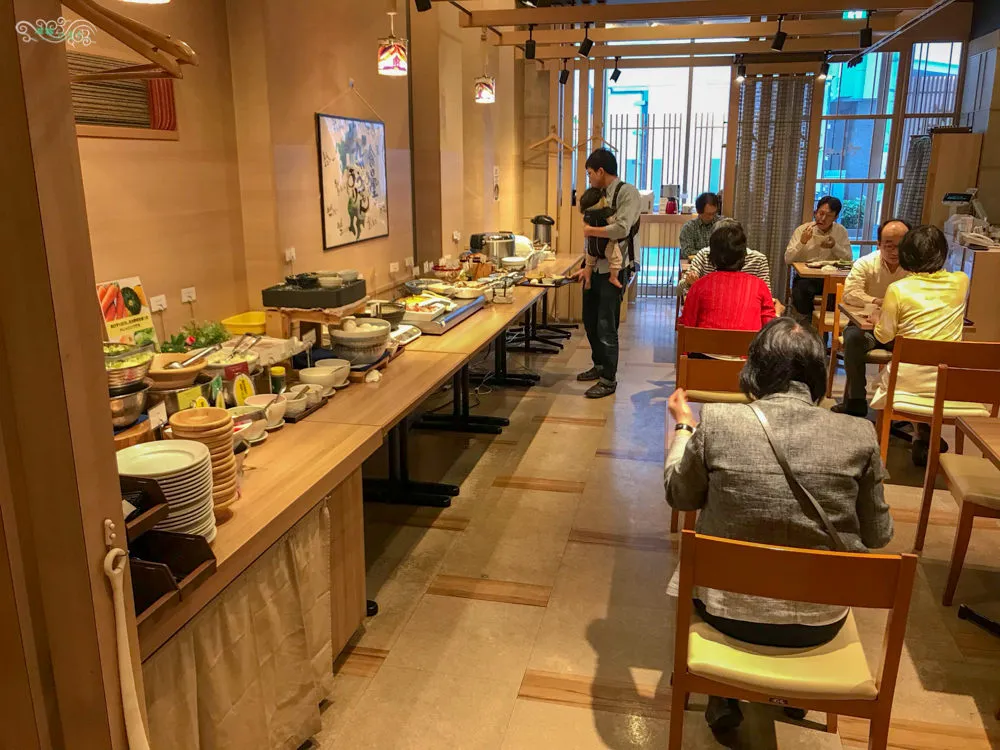 飯店的早餐在一樓大廳旁邊,空間還算寬敞,早餐偏日式的選項居多。