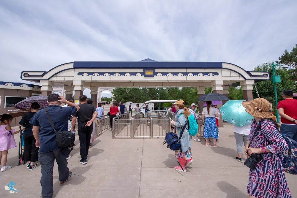 成吉思汗陵座落在鄂爾多斯,伊金霍洛旗的甘德利草原上。大門右手邊是遊客中心,除了購票處之外,建議在此先上個廁所,因為接下來要逛好大一圈陵墓呢。