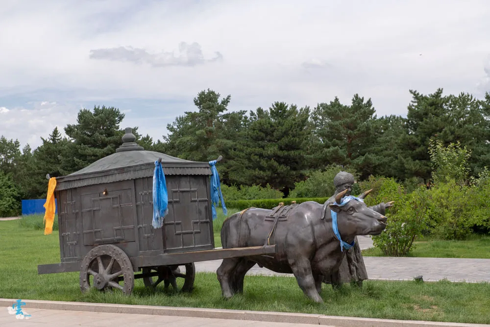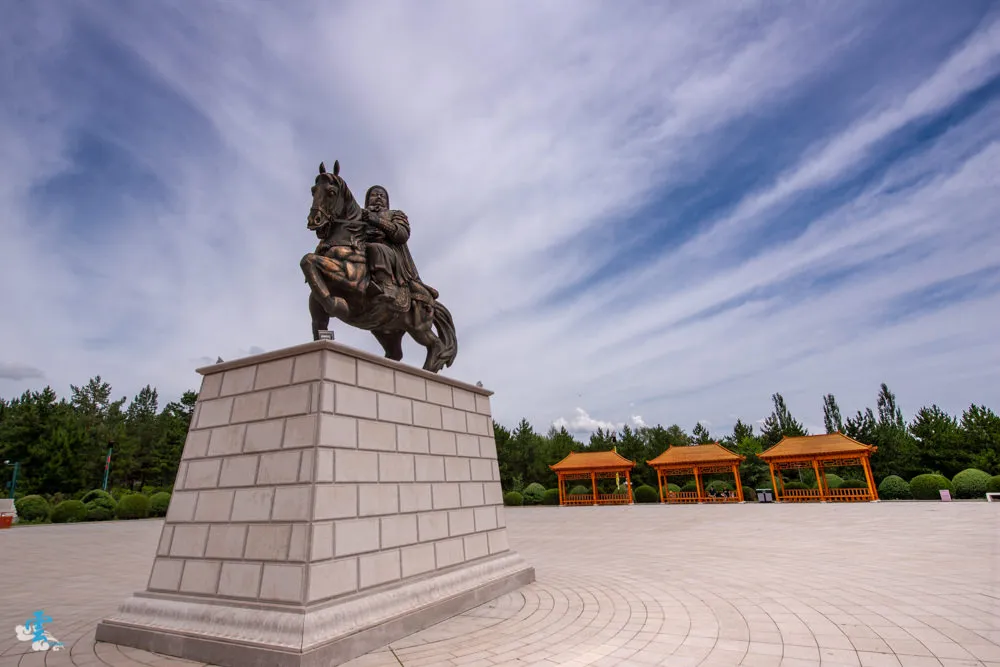 走過門樓牌坊,再過一個台面就是銅像廣場,廣場上有一個醒目的銅像聳立其中,一代天驕成吉思汗的馬上英姿歷歷在目。成吉思汗一生戎馬、征戰終生,不只統一了蒙古,更將中國版圖擴展到前所未有的境界,在這製作精美的銅像中能多少感受到那股威嚴之氣。