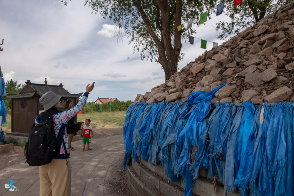 敖包還有個傳統習俗叫『添石許願』,可以將你帶來的石頭或是隨地撿拾的石頭,將他拋上敖包許願,這個動作其實就跟我們一般向許願池投擲錢幣的意義相同。一般遊客都只是象徵性的隨意撿拾石頭來許願,看蒙古地陪感覺就很認真的尋找心中屬意的石頭,讓人覺得非常的慎重與虔誠。