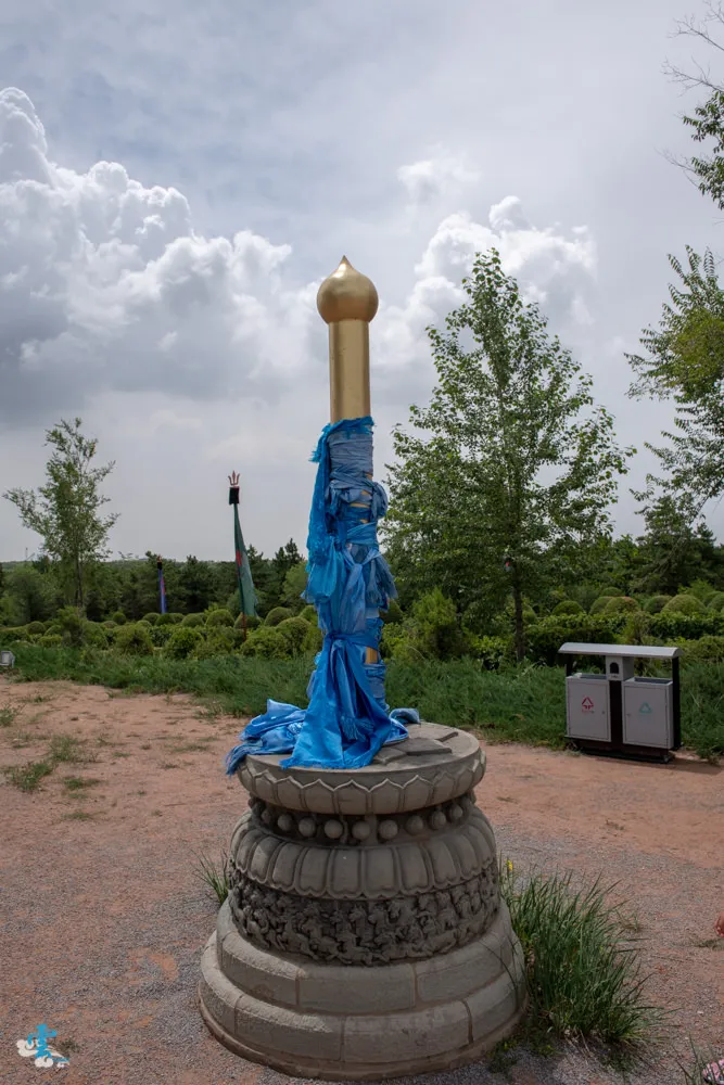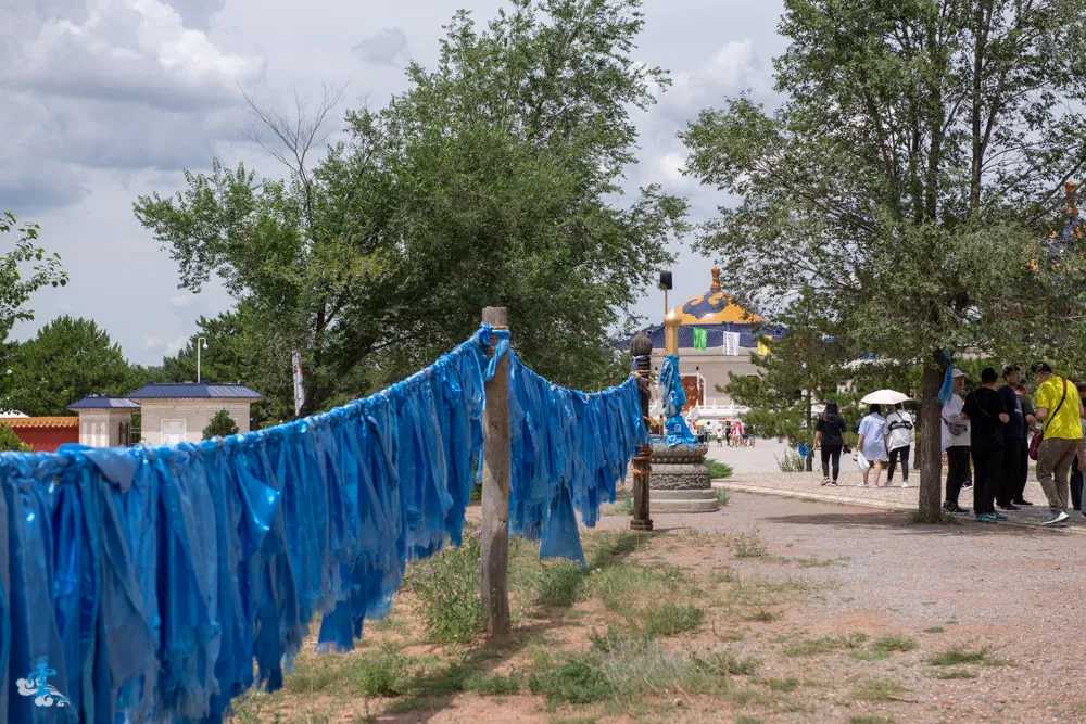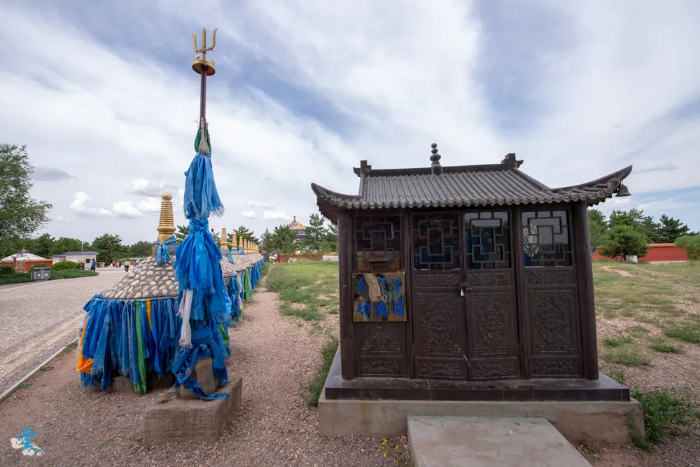 走出成思汗陵園,漫步走向一旁的蘇勒德祭壇,他是供奉成吉思汗戰神、軍徽的地方。祭壇中央由主蘇勒德和四柄陪蘇勒德組成,象徵征戰四方,打遍天下,周圍還有綁著藍色哈達的龍頭。踏上蘇勒德祭壇,似乎也感染了那種金戈鐵馬的豪邁與誓死殺敵的信念,頓時有種熱血沸騰的感覺,好吧~就當凌雲入戲太深了XD