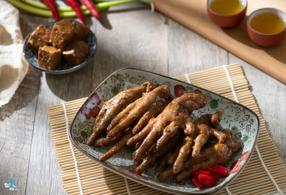 由於已事先去除掉多餘的油脂及雞腳粗膠,讓半Q半嫩的雞腳凍,有著略帶彈性與Q勁的咀嚼感受,獨門醬汁的獨特韻味在嘴裡久久不散,層層風味交疊成一幅令人驚艷的美味地圖。