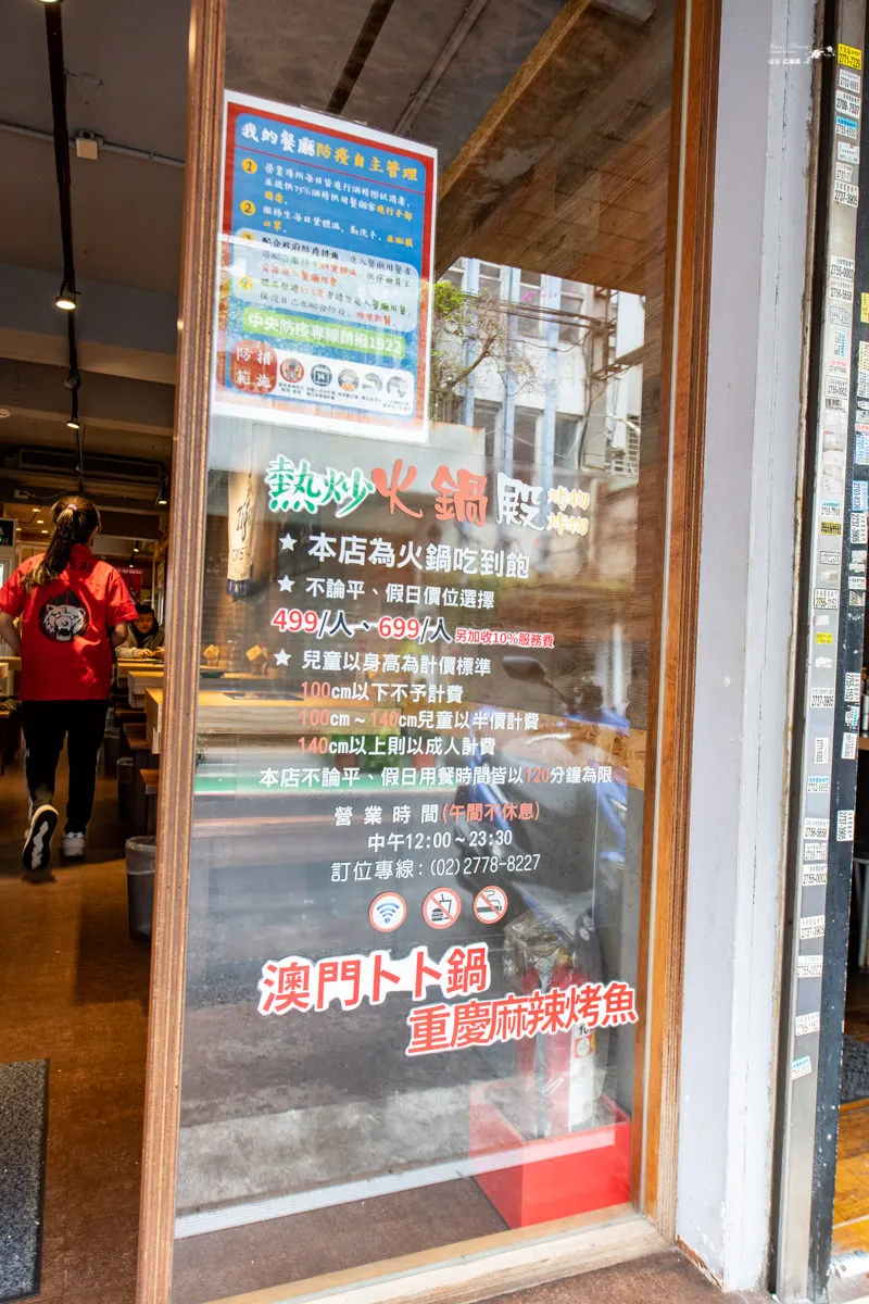 圖|熱炒火鍋殿門口的一些聲明與營業時間。