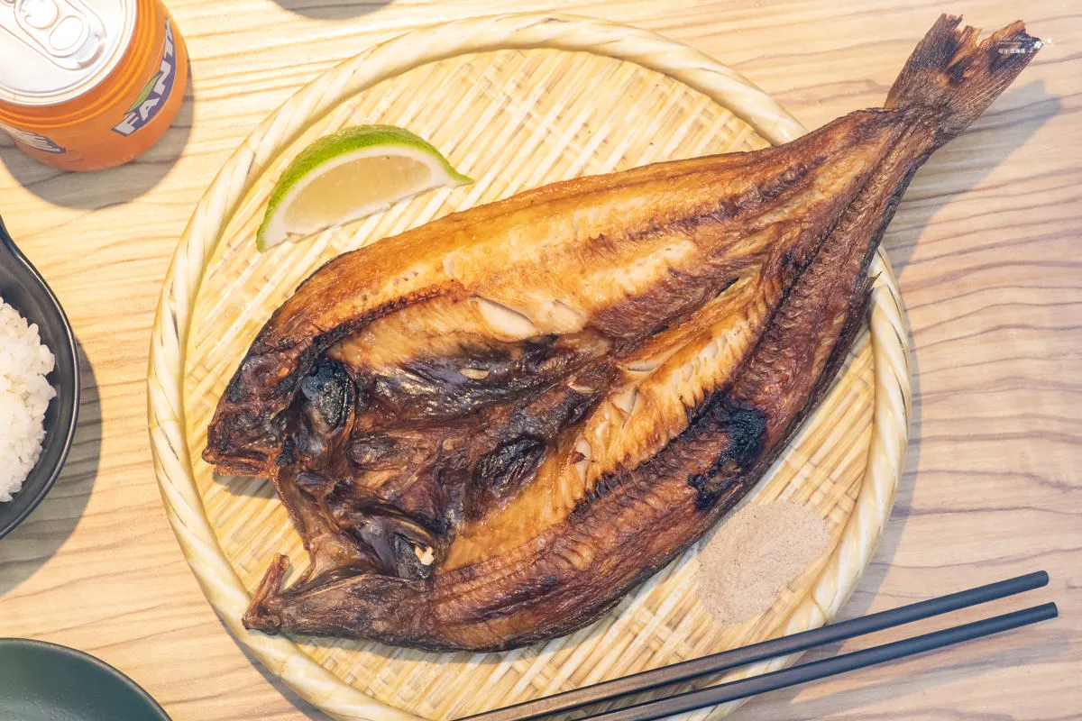 份量十足的花魚一夜干,經過鹽水醃漬與風乾處理過後,鮮味整個被濃縮在魚肉之中,肉質緊緻飽滿還帶有Q度,燒烤過後那熟成的旨味,是下酒配飯的好菜。