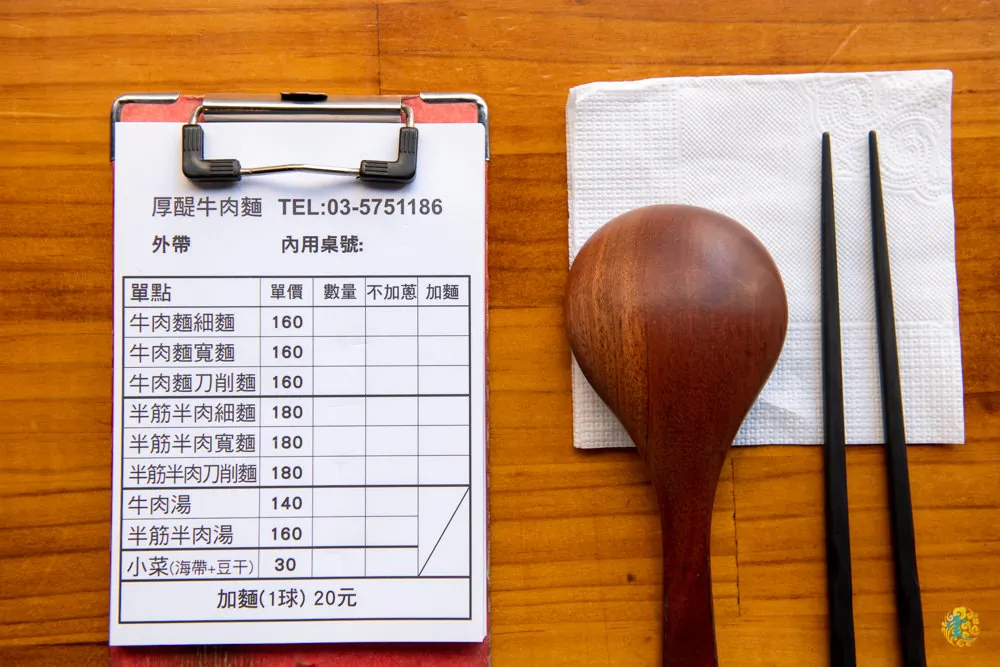 厚醍牛肉麵位在新竹馬偕醫院側門的斜對面,座落在商辦住宅的一樓角落,帶點時尚感的外觀,如果不仔細看店名,通常不會聯想到是一間牛肉麵專賣店說。