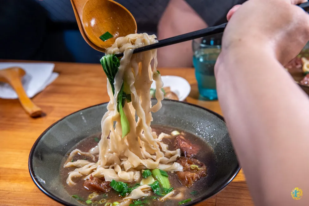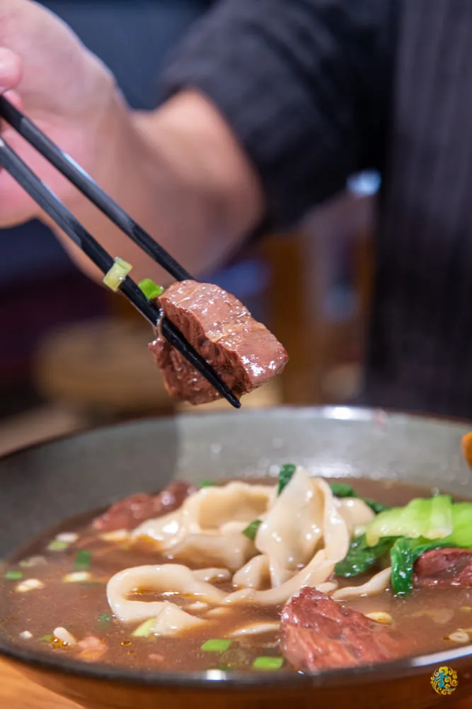 Q黏細嫩的筋與鮮嫩軟棉的肉,在味蕾上演一場驚奇又精彩的樂章。剛上桌時的麵條Q勁彈牙,口感紮實,如果是喜歡軟爛口感的朋友,就再多等個幾分鐘吧XD