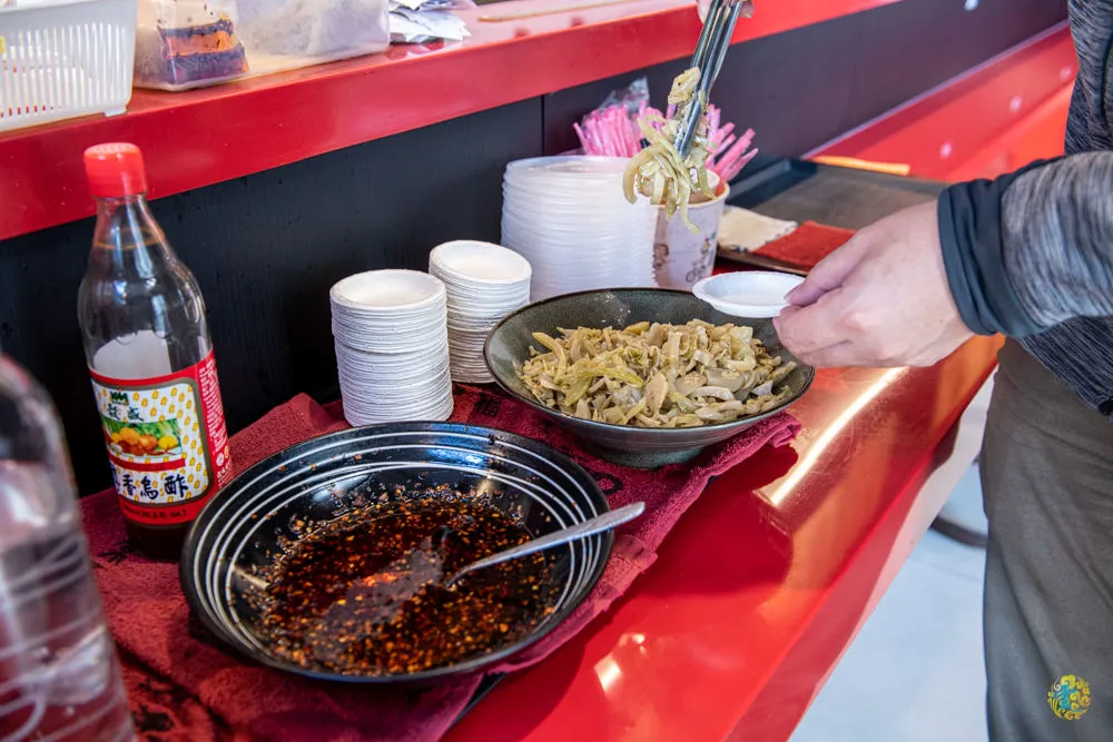 》自助區的酸菜與辣油