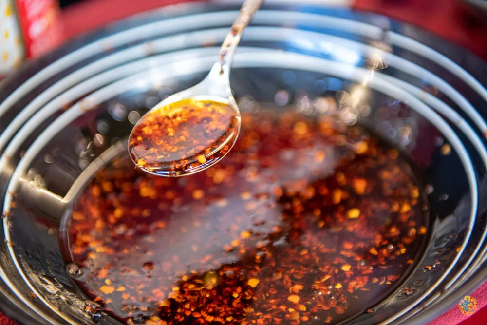 圖|自助區有氣泡水、辣油與酸菜,全都無限量免費提供。 圖|香氣濃郁的辣油,輕微的辣度任何人都能接受。