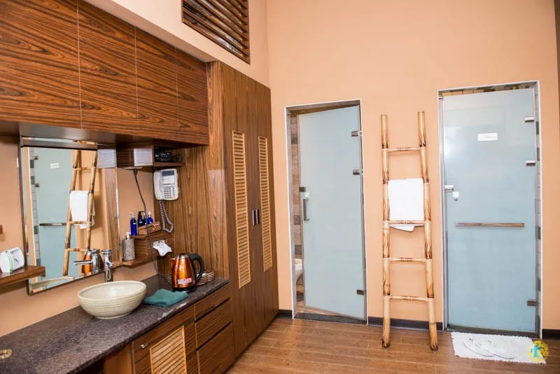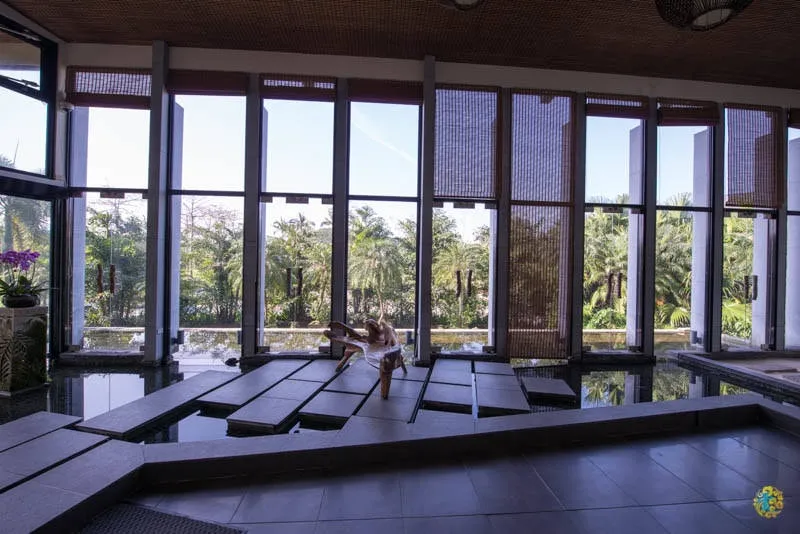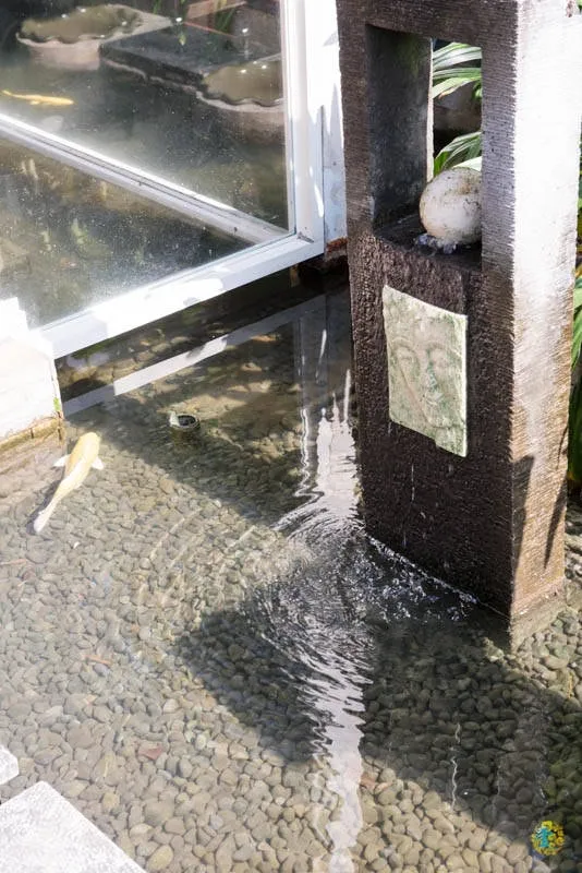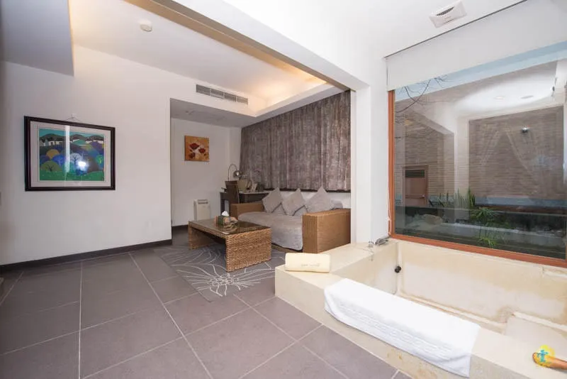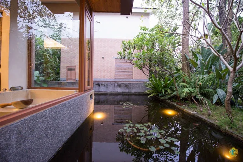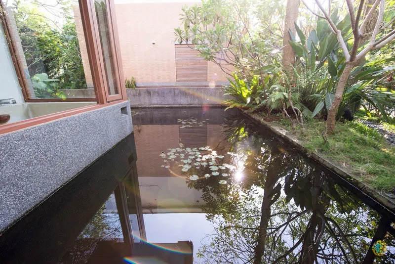 整個房間都被蓮花池包圍,泡澡池就在蓮花池旁