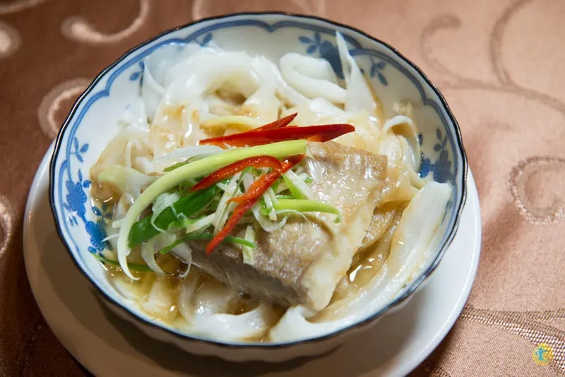 鯛魚纖柔清雅,蒜泥以一種典雅,華麗的包裹著板條,巧妙的提昇這道美食的價值感