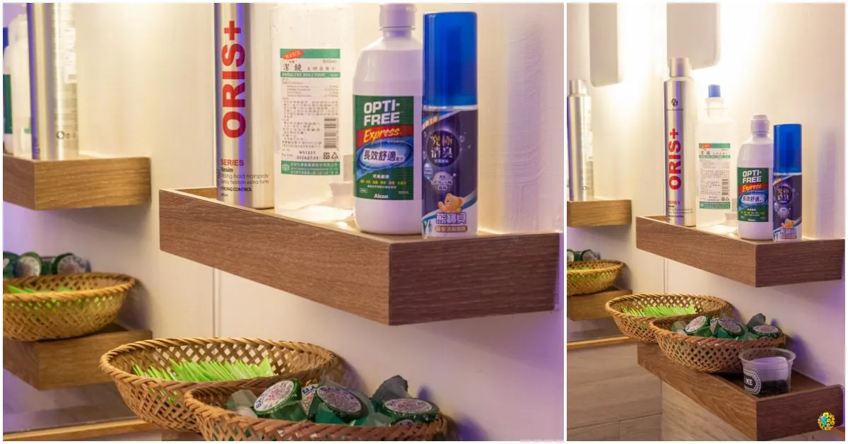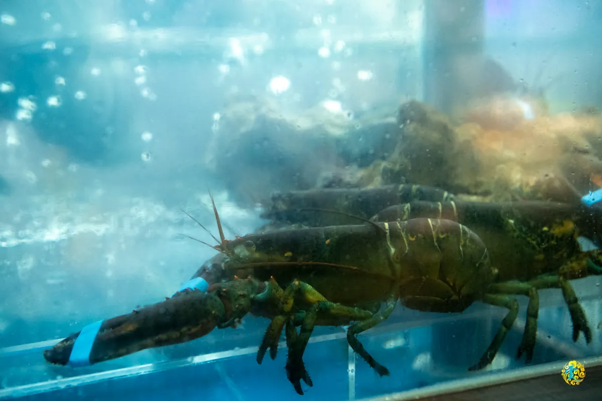 圖|櫃檯房的長型用餐空間,最後面是私密包廂。 圖|打麻將曾是香港電影中的文化表述,以麻將牆面凸顯其港式特色。 圖|店內提供的活體波士頓龍蝦,每隻都很有活力。 圖|廁所洗手台邊提供火鍋店必備的消除異味等用品。