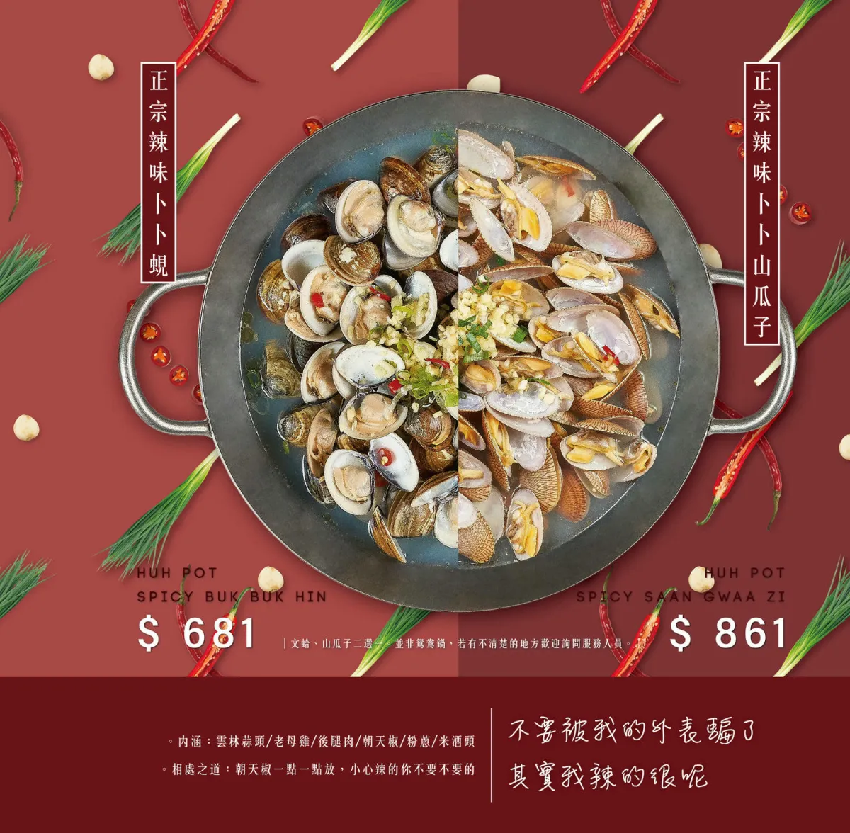 圖|蛤 huh pot的菜單之一,詳細菜單請見蛤 Huh Pot 台北忠孝店臉書官方粉絲頁