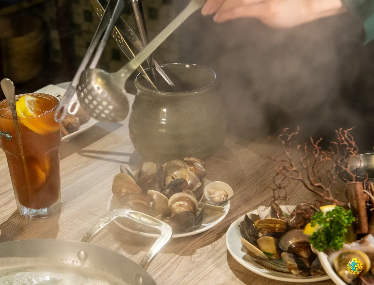 圖|碩大的蛤蜊,彷彿可以嗅到海潮瀰漫的鮮味與氣息。 圖|在翻滾沸騰的湯頭裡,品味蛤蜊中的宇宙。