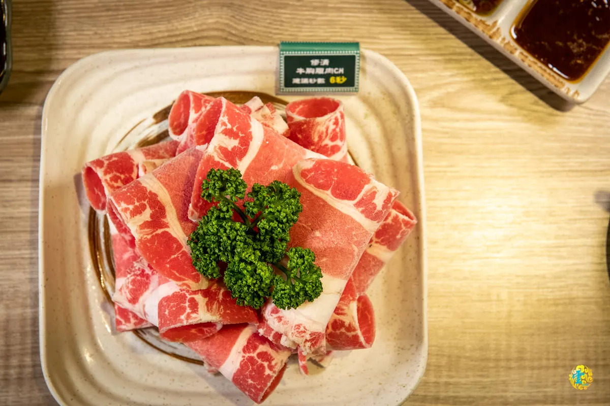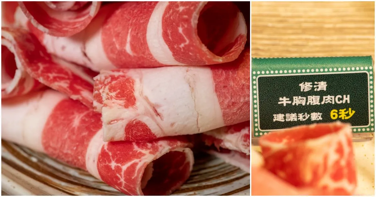 圖|美麗的油花,讓人食指大動。 圖|恰到好處的厚度,還附上推薦秒數。 圖|極富彈性的肉質,咬起來帶有嚼勁,牛肉的滋味在嘴裡滿溢。
