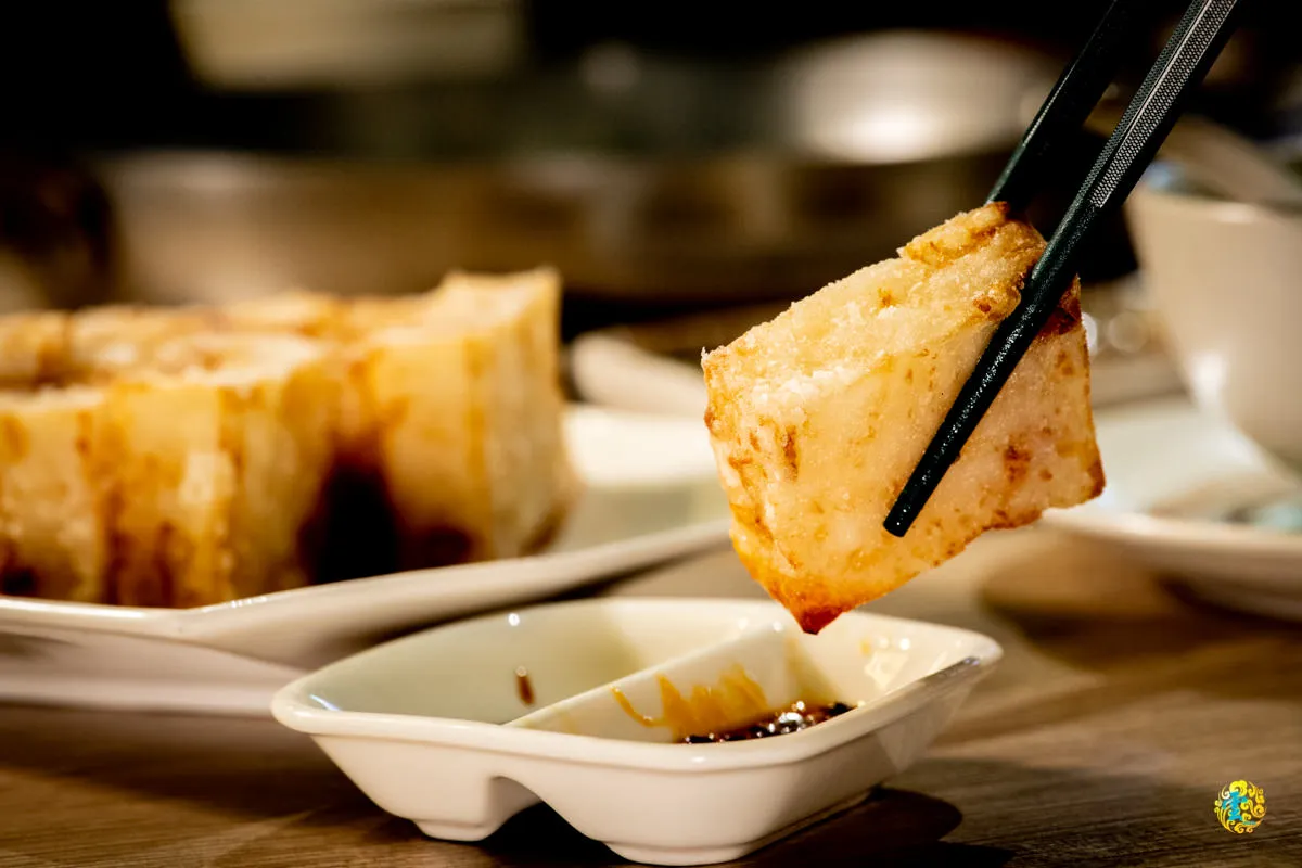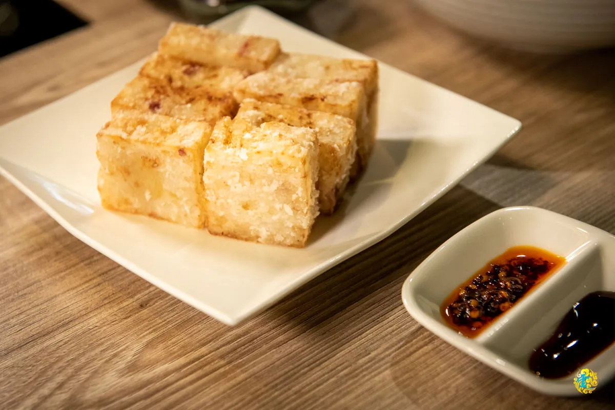 店家有附上辣醬與醬油膏,不過凌雲偏好不沾醬吃原味。港式蘿蔔糕吃起來不像看起來的那般酥脆,口感偏濕且軟嫩輕柔,咬得到蘿蔔絲,米漿的淡雅甜味帶出蘿蔔絲的香韻與清甜,化作最宜人的餘韻。