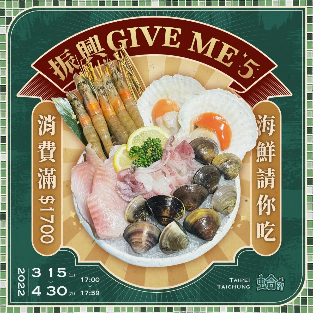 這是4月底前的活動,只要在下午5點過後進場,到6點之前,消費滿$1700即贈五種海鮮拼盤。