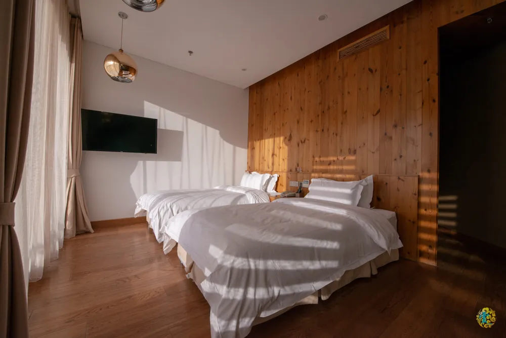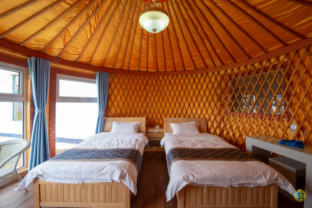 在內蒙古旅行住蒙古包應該是很普遍的情形,雖然現在提供遊客住宿的蒙古包,都是水泥磚牆製作,不過外觀跟內部依舊盡量保有傳統蒙古包的設計,幾片大型落地窗提供良好的採光。現代版蒙古包內,空調、電視、桌椅、床鋪、現代衛浴與盥洗備品等等一應俱全,實際住宿的感覺其實還是跟一般飯店的房間一樣舒適便利,就視覺上的感受有所差異,也算是別有一番風味。跟響沙灣一樣,這裡也是採取一站全包式服務,住宿的旅客憑著手環,都能盡情享用度假區內的所有設施,體會大漠草原最原始、最純樸的民俗風情。