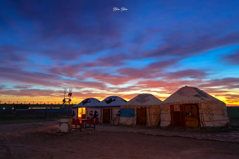 在鄂爾多斯草原渡假區,在一望無際的草原上找個蒙古包當前景欣賞日出,如果沒打算拍照的話,直接坐在蒙古包前的涼亭內,看著太陽從遠方地平線緩緩升起,那種美真的要親眼看到才能真正的領會。
