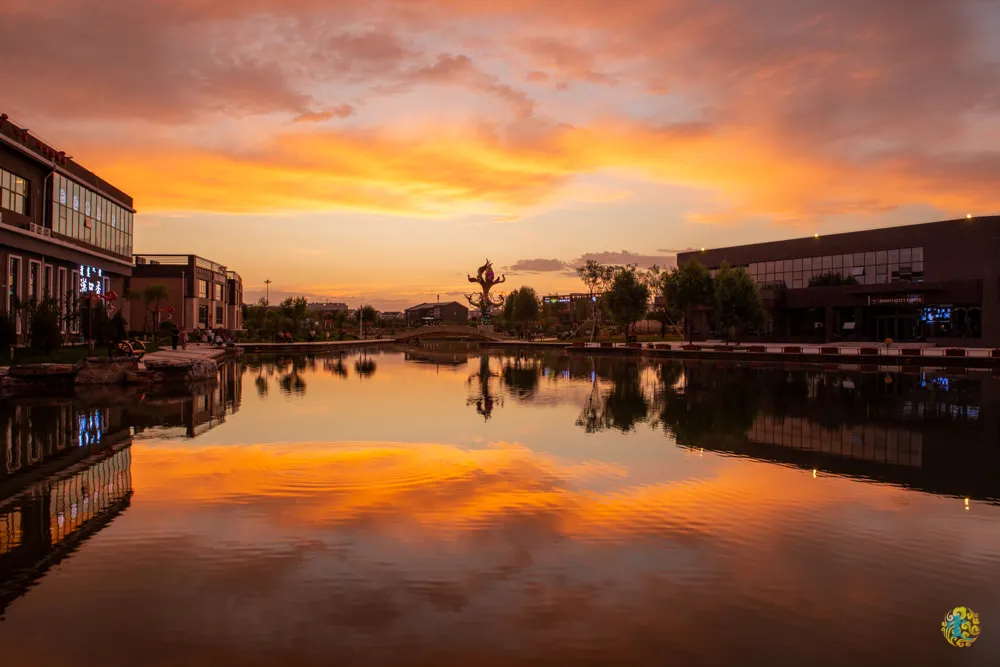 鄂爾多斯市由於羊絨、煤礦、稀土、天然氣而致富,在2007年時躍居中國城市競爭力第一名,人均GDP一萬美元,已然超過北京與上海,中國政府於是開始在舊城區外另闢新城,也就是現在的康巴什新區。不過初期人口比較少,所以一度被稱為『鬼城』,但隨著中國政府提出多項利多政策,慢慢的吸引許多人移居,今年前往康巴什壓根也不覺得這兒像鬼城說。康巴什新區連續多年都入選【 中國最安全城市】前五名,全城24小時網格化治安巡邏,我在飯店窗前有觀察到,這裡的警車都定時定點出現,且都開的很慢感覺巡邏得很仔細,難怪這裡的治安在中國是前幾名啊。相傳這兒是古代絲路的起點,來到這很難想像在十幾年前,這裡是一片荒涼的沙漠啊。現在的康巴什新區已然蛻變成一座美麗的綠色城市,等著你去挖掘他的美。