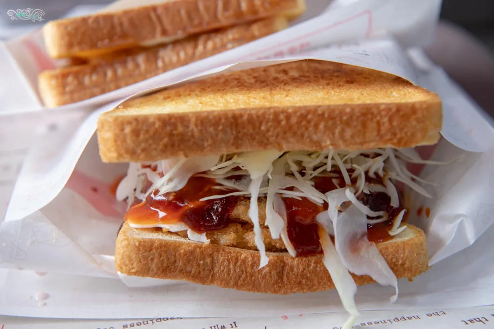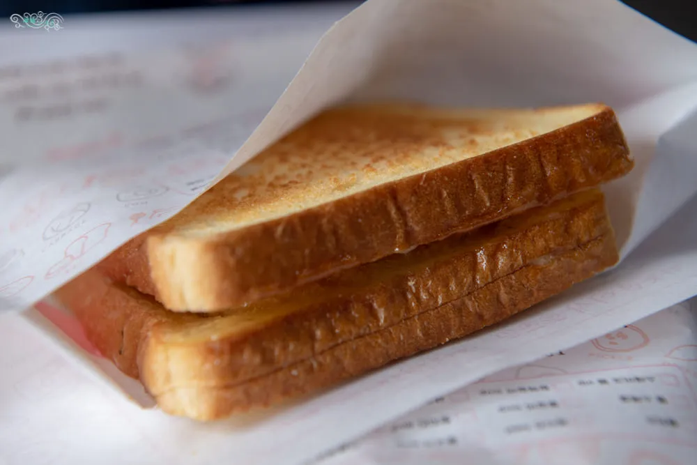 ISAAC Toast的吐司都會塗上一層奶油後,在放到鐵盤上烤,若是肉類的話,則會在鐵盤上鋪上鋁箔紙在烤。剛拿到的時候,金黃色的土司奶香相當濃郁,混合著特製的美乃滋與醬料的氣味,一口咬下大大的滿足啊。土司邊角酥脆中間鬆軟,我點的是辣味肉排,肉質軟嫩配上清爽解膩的生菜,相當順口,但是特製辣醬後勁十足啊,吃到後來直冒汗。女王的是雙重起司,香甜濃郁滋味好。
