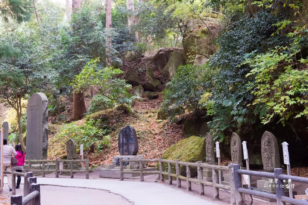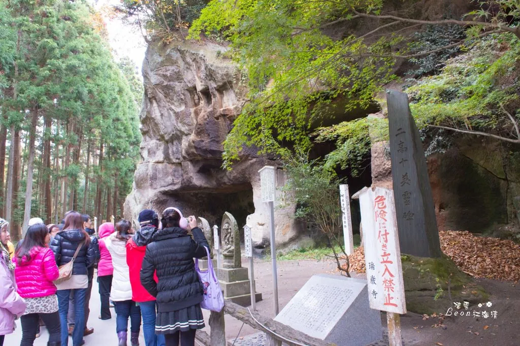 參拜道一旁是樹立著三十三座莊嚴慈瑞觀音石雕像的巨大瑞嚴寺洞窟遺跡群,古老的松島被日本人稱為『奧州の高野』,是一片不受污染,充滿神祕又有靈性的巨木淨土,許多人到這裡來祈求往生後的寧靜。