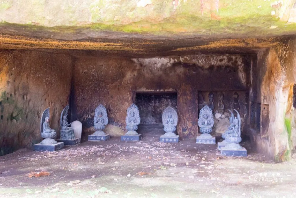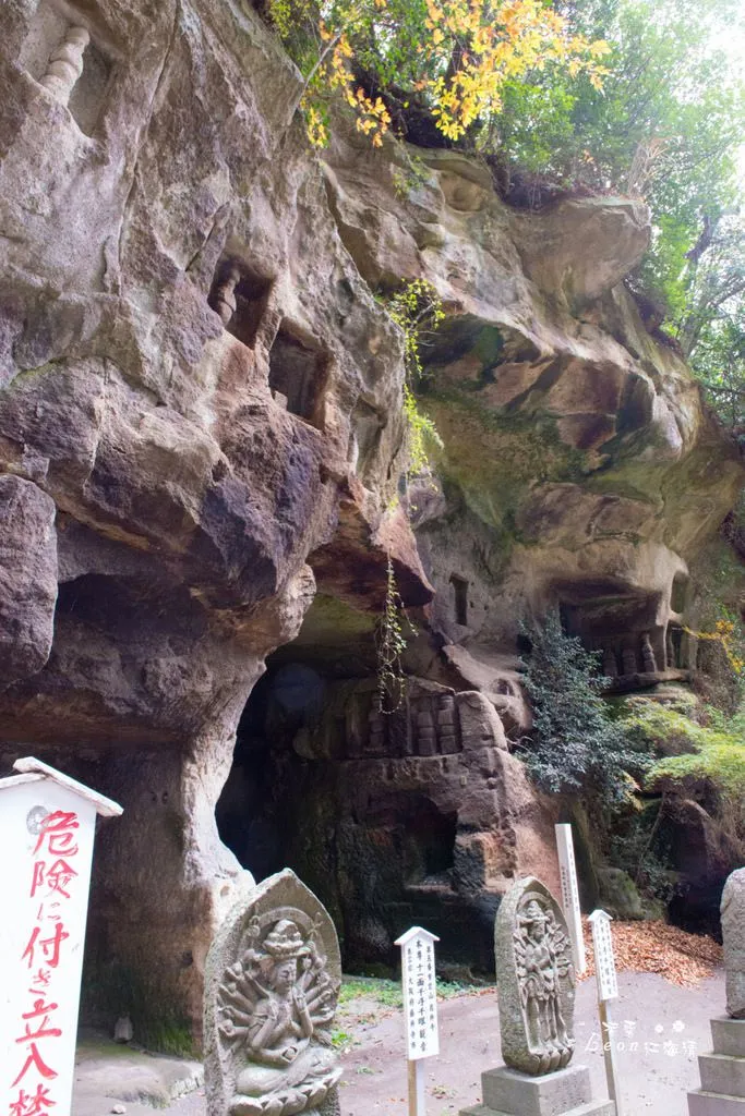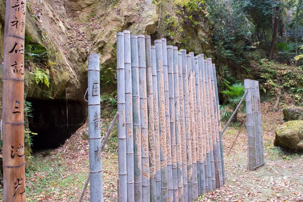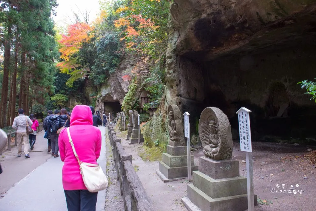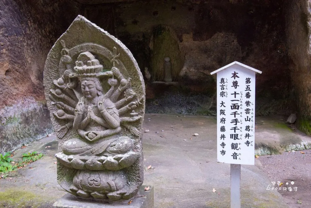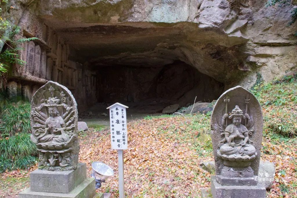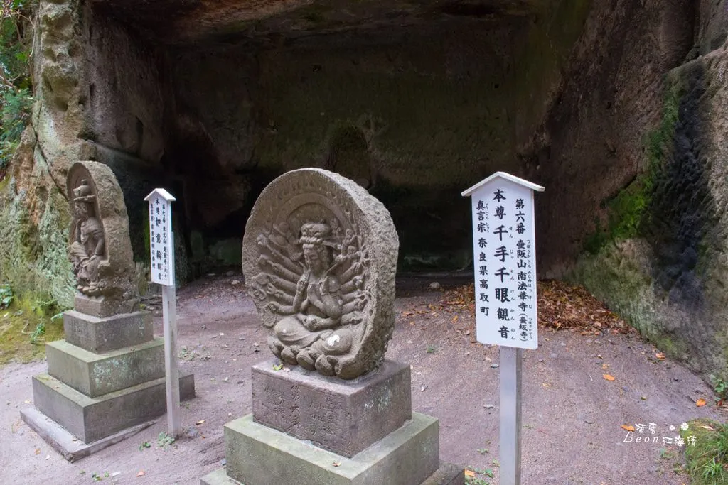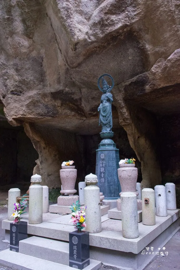 瑞嚴寺洞窟群自從西元1192年鎌倉時代開始,就有人在這些大洞穴安置骨灰,作往生紀念儀式,一直到江戶時期末(1603-1867)才逐漸式微,觀世音菩薩有三十三種化身,所以這裡便將所有化身的樣子製作成雕像。