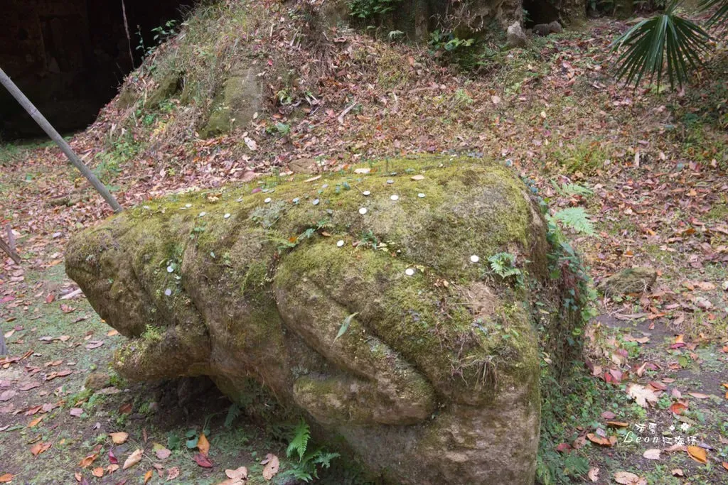 走著走著,發現一個造型奇特的石頭~石蟾蜍,或許是早年雕刻的作品,上頭長滿了青苔。