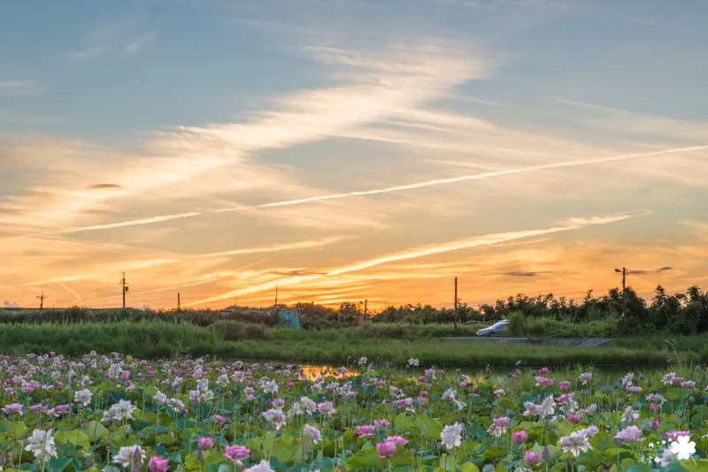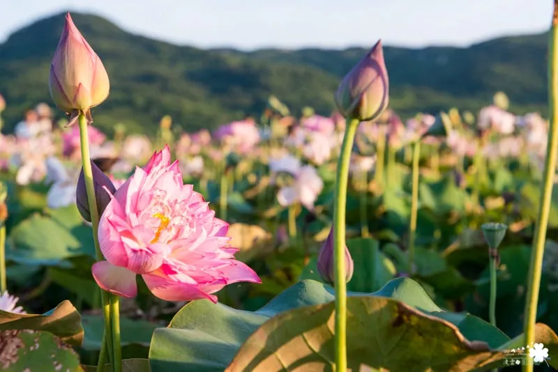 金山賞荷花》鏡花水日、日燦蓮花 磺清橋
