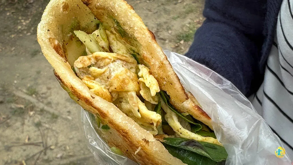 圖|以其獨特的口感和美味的內餡,吸引了無數食客的喜愛。 圖|用原味蔥油餅包裹著豐富的牛肉餡,每一口咀嚼都能感受到不同的層次。 圖|怕你拿著油膩,還額外用塑膠袋裝著。