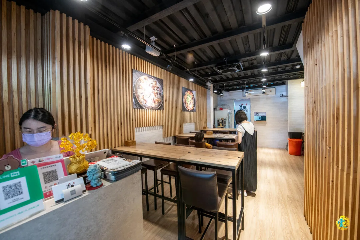 有雞食堂的用餐空間以原木打造的LOFT工業風格裝潢,讓整個空間散發出獨特的魅力。漆黑的天花板,搭配著裸露的管線和鐵件元素,創造出具有線條感的現代工業風格。這種設計不僅讓空間感覺開闊無隔,還帶來了一種剛柔並濟的視覺對比。牆壁的設計也十分巧妙,以木質色系為主,搭配著木質桌面和地板,營造出柔和的氛圍。而溫暖的燈光進一步注入了一絲溫馨感,讓整個空間更加舒適。牆上的美食照片和各種酒品瓶子,不僅是裝飾,更是視覺上的焦點。它們不僅增添了空間的吸引力,還讓人一眼就能感受到這裡的美食和酒品的多樣性。