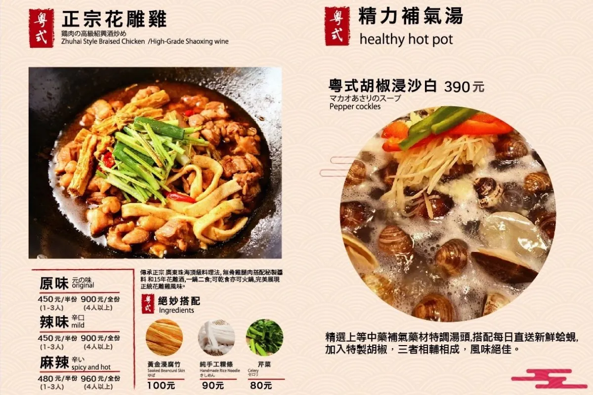 位於台北西門町徒步區的『有雞食堂/有雞廚房(kitchicken)』,它的存在像是一道明亮的燈塔,吸引著食客們走進這個經典的粵川菜天地。這個小巧的店面,卻蘊藏著豐富多彩的美味,正宗的廣東珠海料理在這裡得以傳承。「有雞食堂」以粵川菜為主打,呈現了台灣人熟悉的粤菜風味。圖文並茂的菜單,呈現出廚師們對於食材的匠心與用心。尤其是粵式正宗花雕雞,這道料理以無骨雞腿肉搭配秘製醬料,再加上15年花雕酒,帶來風味絕佳的味蕾之旅。這款獨特的花雕雞不僅可乾食,還可用來做火鍋,充分展現了粵式料理的多樣性。還有精心調製的湯頭搭配新鮮蛤蜆的粵式胡椒浸沙白,海之禮讚的豐富層次熨貼了饕客的味蕾。這裡的菜色不僅美味可口,還能讓人在獨特的用餐環境中度過一個愉快的用餐時光。