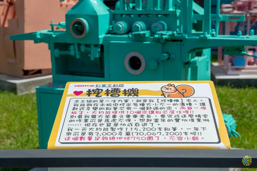 跟上次來時不太一樣,戶外區多了好幾台機器,靠近一看原來是各種文具的陳年製作機器,每台機器前方都有文字說明版,也成為不少民眾的拍照打卡點。