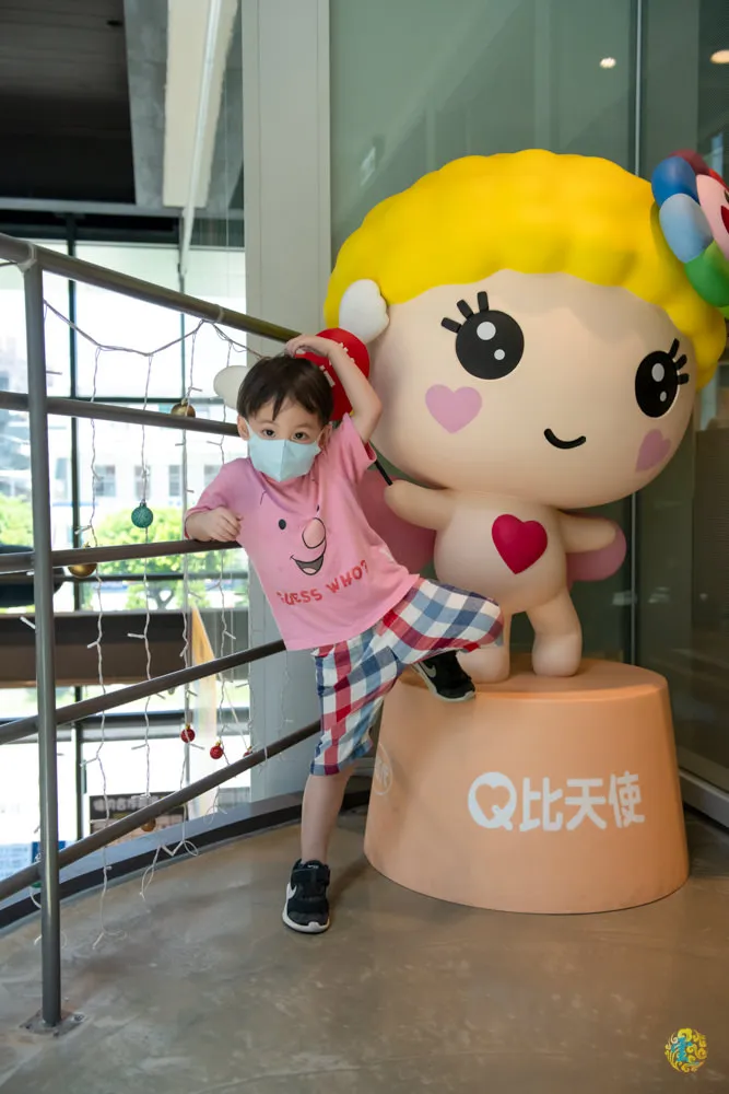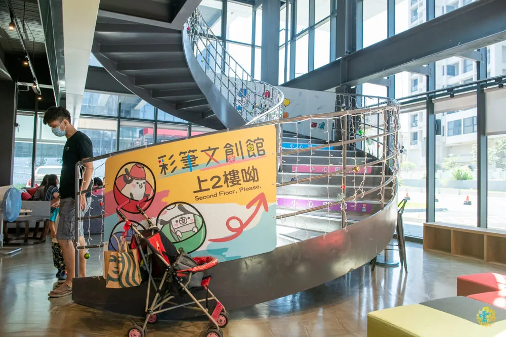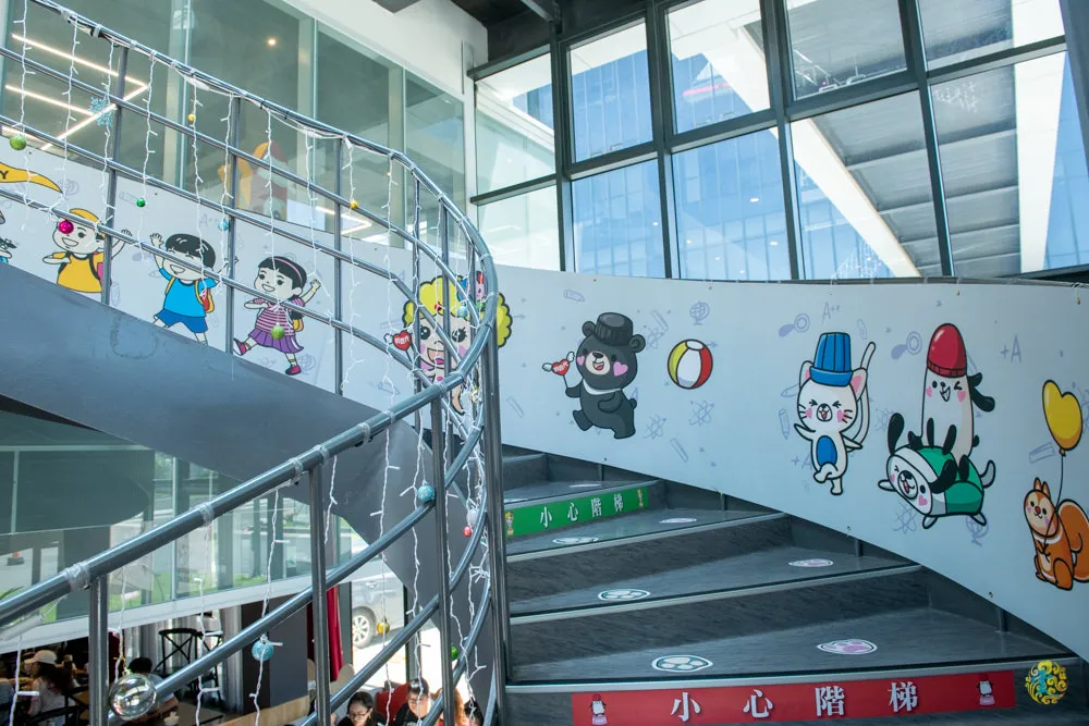 圖|通往二樓文展區的螺旋狀樓梯。 圖|文創區的空間規劃,期待A棟4樓的開放。 圖|往2樓的路上,有Q比家族陪著你喔。