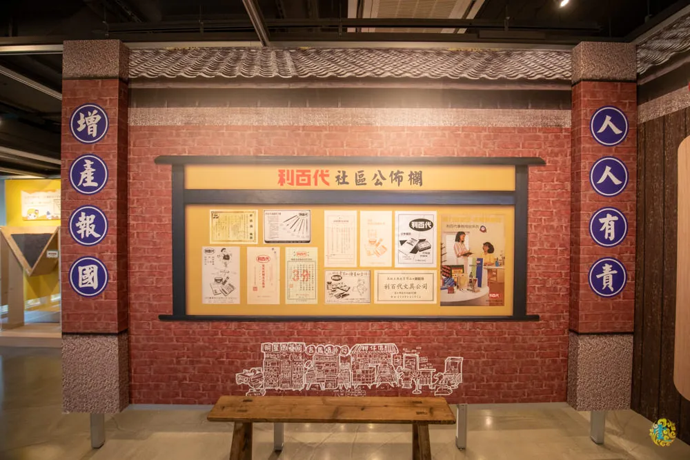 圖|很有懷舊風格的利百代社區公布欄。 圖|非常用心的立體呈現方式,述說著利百代的產品沿革。
