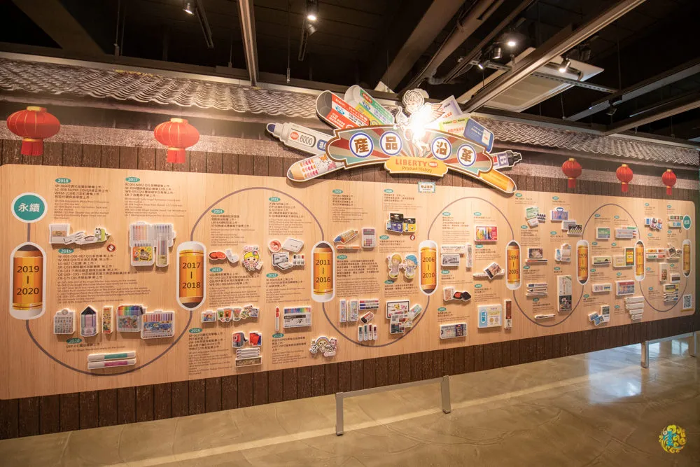 文展區內的巨大鉛筆座椅是一大亮點,是除了塗鴉牆之外,小孩子最愛停留的地方。中間的文具展示、產品沿革與歷史沿革,不少遊客都是走馬看花的帶過,有點可惜,或許有參與導覽行程的話,才會花更多時間去看看細節。凌雲認真看了一下中間的展示品,都是令人懷念的文具說,有些文具其實凌雲家裡也還有留著呢。