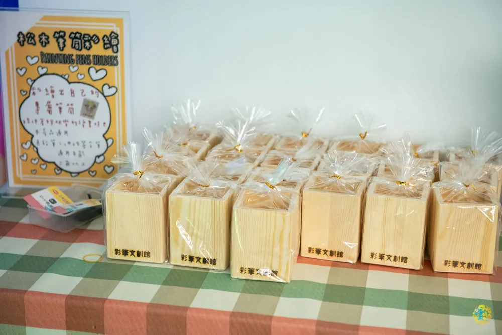 圖|方正的木製筆筒,挺實用的。 圖|如果不知道要畫什麼,可以用蓋章的方式喔。 圖|這是桌上的範例可以參考。