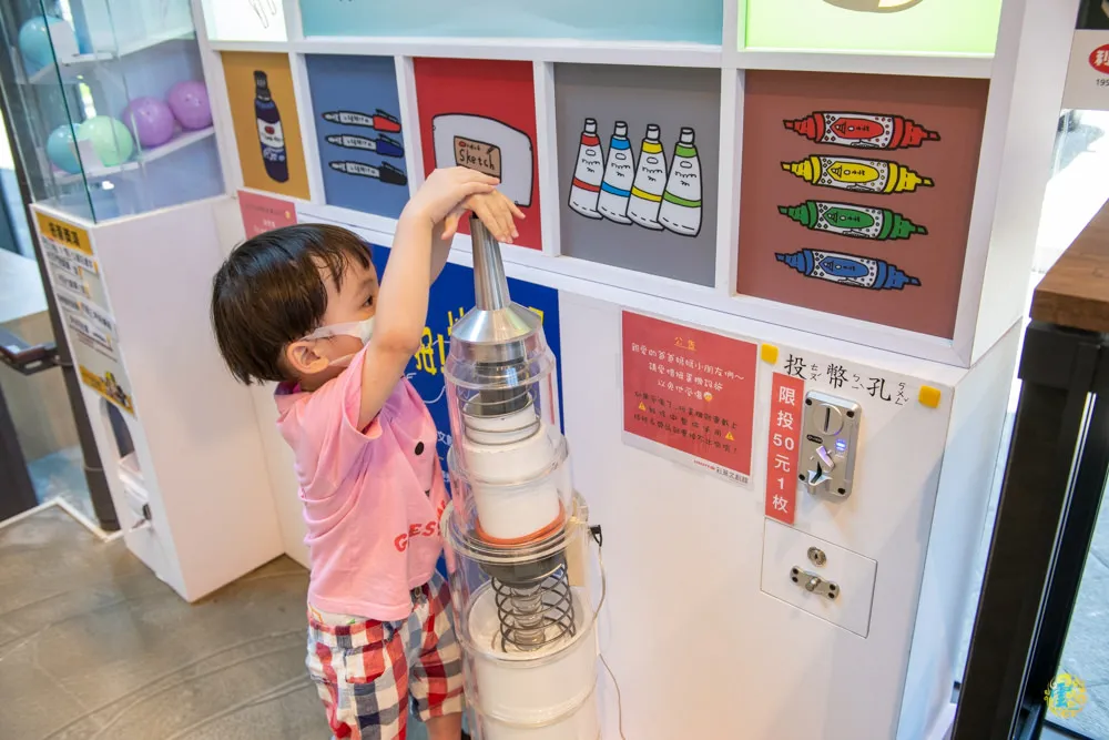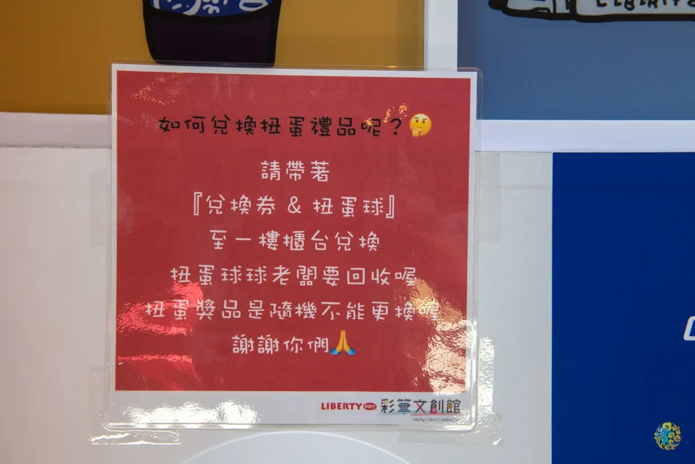 圖|在我們DIY完下來時,此處已是等著玩扭蛋機的排隊人潮。 圖|機器上有標示說明如何兌換扭蛋獎品。 圖|扭蛋機的使用說明。