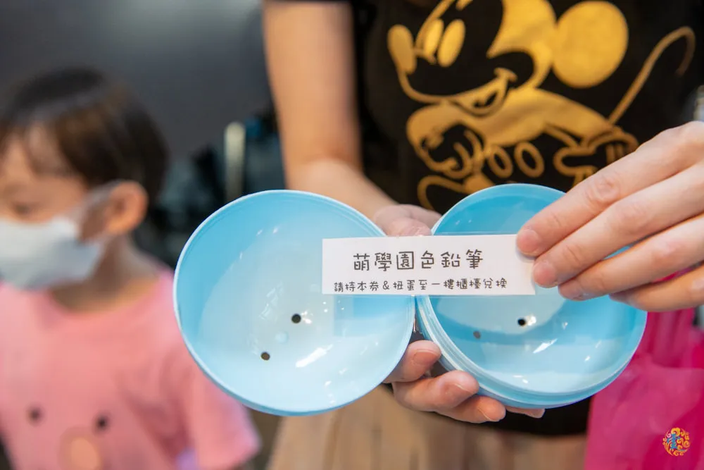 圖|按下筆尖對小孩子來說,是非常重要的任務,誰都不可以跟他搶。 圖|按下筆尖後,接著就看到彩燈旋轉。 圖|打開扭蛋,裡面有獎品名稱紙條。 圖|將紙條拿去櫃台兌換獎品。