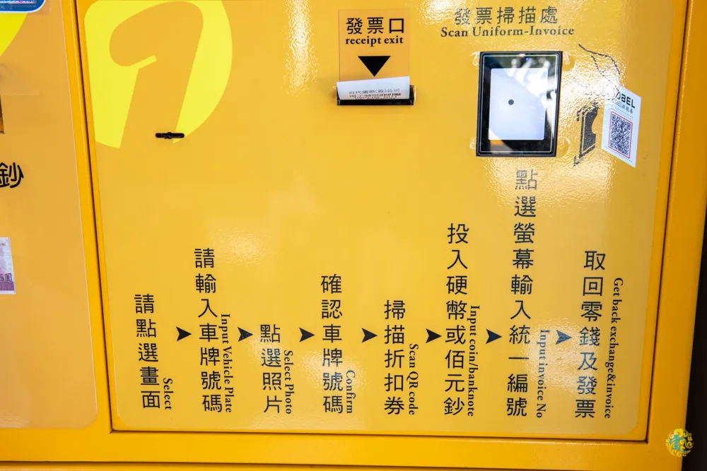 圖|地下室左手邊一整排都可以停車。 圖|使用館內消費的發票掃描條碼可折抵停車費。
