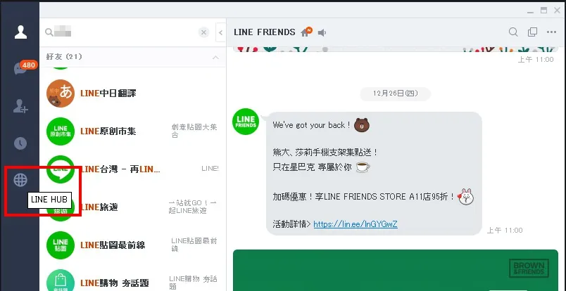 LINE在手機板跟電腦版都推出全新的『主頁』,電腦版的主頁稱之為『LINE HUB』,取代了原本為『LINE TODAY』的按鍵。全新推出的LINE HUB,最上方是即時新聞精選,底下有三大分類:今日焦點、追劇指南與購物賺點,還有16個相關服務,諸如LINE TODAY、購物、旅遊、貼圖、主題等等精選服務,一次滿足大家各種不同的需求。